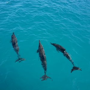 カップルで寄り添いながら泳ぐイルカや、お腹を見せて泳ぐイルカも。