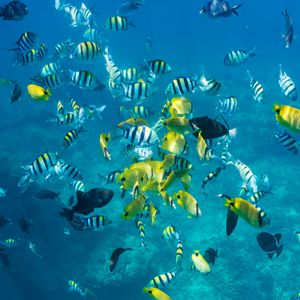 イルカと泳いだ後は水深10mくらいの所で、熱帯魚などと戯れました。