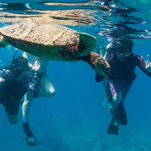 イルカとホヌのスイム体験をしました。じゅりさんはじめ、スタッフみなさんのイルカを見て欲しい!という強い思いが感じられ、たくさんのイルカを見ることができました。またカメのエリアは自由時間のようにカメとのんびり泳ぐことができ、キレイな魚や凧も見ることが出来ました。スタバみなさん本当に元気でパワーをもらえました!ぜひまた参加したいです!