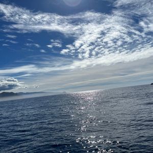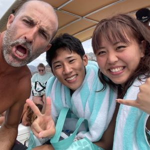 家族で参加しましたが、日本人は私達だけ。あんまり英語が得意じゃないと、カタコトで伝えると、船長さんは、ノープロブレムと言ってくれました。とにかく4人のクルーがみんなよく働くし、お客さんのことも気にかけてくれて愛想がよく、気持ちがよかったです。朝は曇っていた空も晴れてきて、イルカやウミガメ、オットセイの親子も見られました。