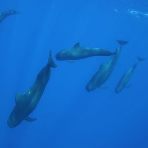 沖に到着して間もなく、コビレゴンドウと言う種類のイルカに出会えました。