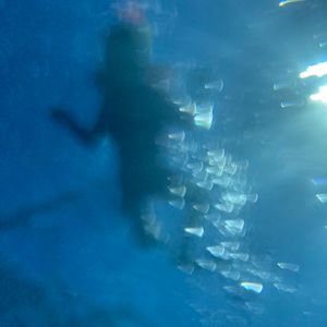 メインのガイドはブルックという格好良い女性で、人魚のように深く潜って行ったり、動画を沢山撮ってきてくれました。私たちは船長に「今だ!海へ入れ!」と言われ、ジャブンとして水面でプカプカ浮いて、「下見て!!」と言わ、顔をつけて見ていると、ちょうどイルカが通って行ったり、カメが泳いでいたり・・・。