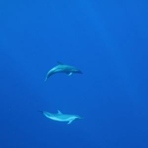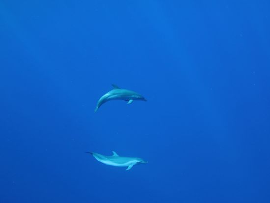 まず出航したてで、ハシナガイルカの群れにお迎えされて驚きました。今回はイルカと何回も一緒に泳ぐことができて、言葉にならないほど感動しました。イルカからこちらに遊びに来てくれたのかもしれません。海も本当に美しいと思いました。