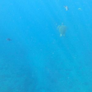 船に乗ってから1時間経つもイルカに遭遇出来ず、走り回っている最中、クジラが見えたというクルーの掛け声でその姿が現れるのを待っていたが、別の船からイルカに遭遇との連絡入ったため、泣く泣く移動。イルカが二頭いて、いよいよか!と思うが、何故か中々入水せず5分10分と過ぎていく。ようやく入水した時にはイルカは去ってしまった。まあ自然のイルカなので、仕方無いし、以前イルカと泳いだこともあるので、発見出来ただけでも良かった、と気を取り直して熱帯魚と戯れようと思ったが、その数の少なさにビックリ!南国に来てこんなに少なかったのは初めてです。もう少し良いポイントは無いのか・・でもウミガメは見れた。次回無料券を頂いたが、一部返金の方が良いのでは?