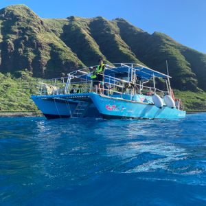 妻と二人で参加しました。天気の良い日で波も多少でしたが、自分と妻の両方とも酷い船酔いに苦しみました。シュノーケリングで海の中にいるときは良いのですが船に上がると船酔いが再発して帰港まで二人して苦しみました。とはいえクルーの皆様の働きぶりやツアーそのものは全く問題ないものです。評価が低いのは単純に自分達の体調の問題からの経験です。集合場所は観光にも便利なコナの港でとても綺麗でした。