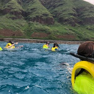 私は小5で家族とハワイ旅行に行くため予約しました。予約した時は、そう簡単には会えないだろうと思いながら行きましたが本当にイルカさんに会えました。運良く虹も綺麗に見えウミガメさんにも会えました。スタッフさんも優しく面白かったので凄く馴染みやすかったです。そして凄く丁寧にゴーグルの付け方なども教えてくれたのでシュノーケリング始めての私でもイルカさんに会えました!ウミガメも二回も見れて凄く楽しく嬉しいシュノーケリングになりました。ハワイでしか出来ない様な体験ができてとても良い思い出になりました。ヨットハーバーには人懐っこい可愛い❤️野良猫と犬にも会えました。