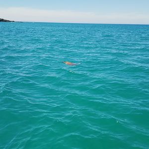今回本当に運が良く、3回泳ぎながらイルカを見ることができたし、帰りの船に近寄ってきて一緒に泳いで遊んでくれたので、とても感動しました!