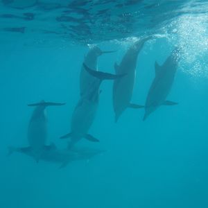 イルカを発見すると急いでフィンとマスクを装着。船長さんの合図で次々に海に飛び込み、スタッフの誘導する場所まで泳ぎます。合図で海中を見ると何十頭のイルカの群れが下を泳いでいくのが見えました!海は透明度抜群で視界もクリア。いい体験ができました。