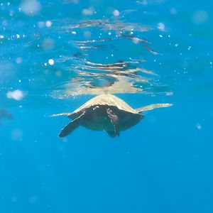 ウミガメは泳ぎが遅いのですぐに近づく事が出来て、「触ってはいけない」というのルールがなければ触ってしまうくらいに接近して泳げました。