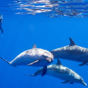 催行人数に達しなかったので無料でイルカスイミングにアップグレードしていただきました。船員がイルカに詳しい方ばかりで、スポットの見極めが素晴らしかったです。潜るとたくさんのイルカを見ながら泳ぐことができ、とても良い体験ができました。