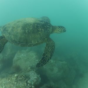 イルカは泳ぐのが早く姿を見るだけで精一杯でしたが、綺麗な海の中で見えるシルエットがとても幻想的でした。カメとはゆっくり一緒に泳ぐことができました。