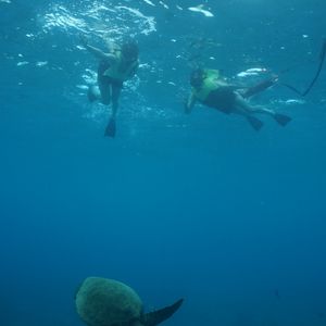 出航5分とたたず、ハシナガイルカの群れが見つかり、船から見ることができました。ただ、この種類のイルカと一緒に泳ぐことは禁止されているため、ウォッチのみ。その他のイルカには、出航して2時間探しても会えませんでした。結果、イルカスイムはなし。時間も経ったので亀と泳ぐため移動しましたが、かなり港近くで停泊しました。そちらでは、3匹のウミガメと遭遇できましたが、水も濁っていた綺麗ではないところでした。イルカと泳げなかった分(こちらに関しては自然相手なので仕方がないと思います)、せめて珊瑚礁があり水の綺麗なところで彩りの綺麗な魚と泳げるようにしてもらえる等、工夫してしていただきたかったです。イルカスイムができなかったので、次回のツアーは半額で参加できるとのサービスはありますが、旅行期間によって再トライは難しいですし、泳げなかった時の別プランをもう少し工夫されないと、お値段的に消化不良な気分で終わってしまうと思います。