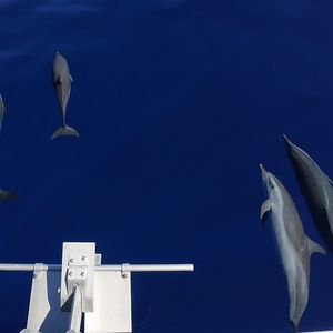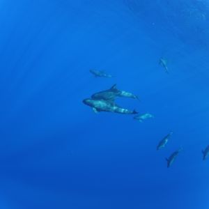 水深1000mとなると海の青さが違いました!そこで大群(30頭くらい)のイルカたちと出会う事ができ感動体験でした。