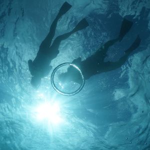 カメラマンさんが海に飛び込んだらすかさず後を追って、彼らの指示に従って山側或いは海側をタイミングを見て潜るとドルフィンと会える確率が増えると思います!今回は2回も遭遇する事が出来ました。