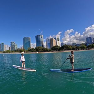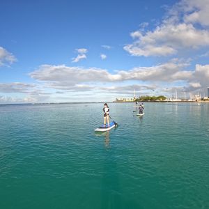 アラモアナの海はワイキキと違い、波が穏やかで初めてsupをする人にもとてもおすすめだと思います。また、ウミガメもいっぱい見つけることができて良かったです。