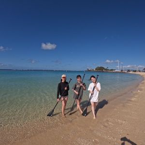私と娘3人(内1名は小学生だったのでプライベートレッスン)で参加しましたが、本当に楽しくてあっという間に時間が過ぎてしまいました。インストラクターの皆さんが楽しく優しく教えてくださったおかげで誰一人海に落ちることなく楽しくSUPできました。