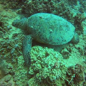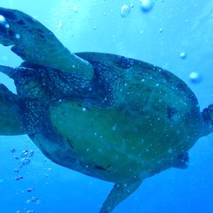 亀の目を見つめたり、海面へと呼吸しにいく亀を海底から見送ったり、