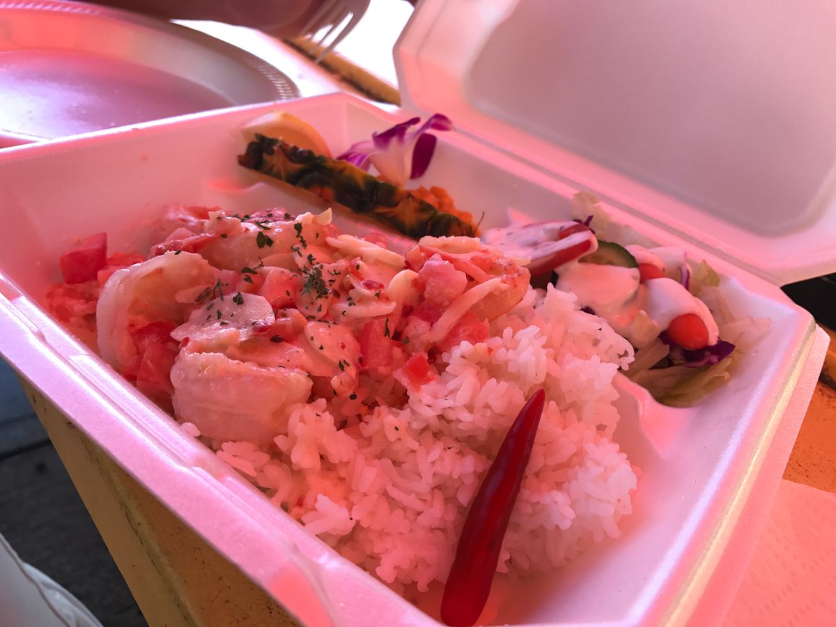 ノースショアに行ったら絶対行きたいと思っていただけにとても残念でした。代わりにガイドさんがオススメしてくれた日本人経営のCAMARONという店で食べましたが、正直別日にホテル周辺で食べたガーリックシュリンプの方が美味しかった。プラス1ドルでエビの殻付きのサービスがあったのは食べやすくて良かったです。日本人らしいサービスですね。それからフリフリチキンを食べました。こちらは美味しかったです。