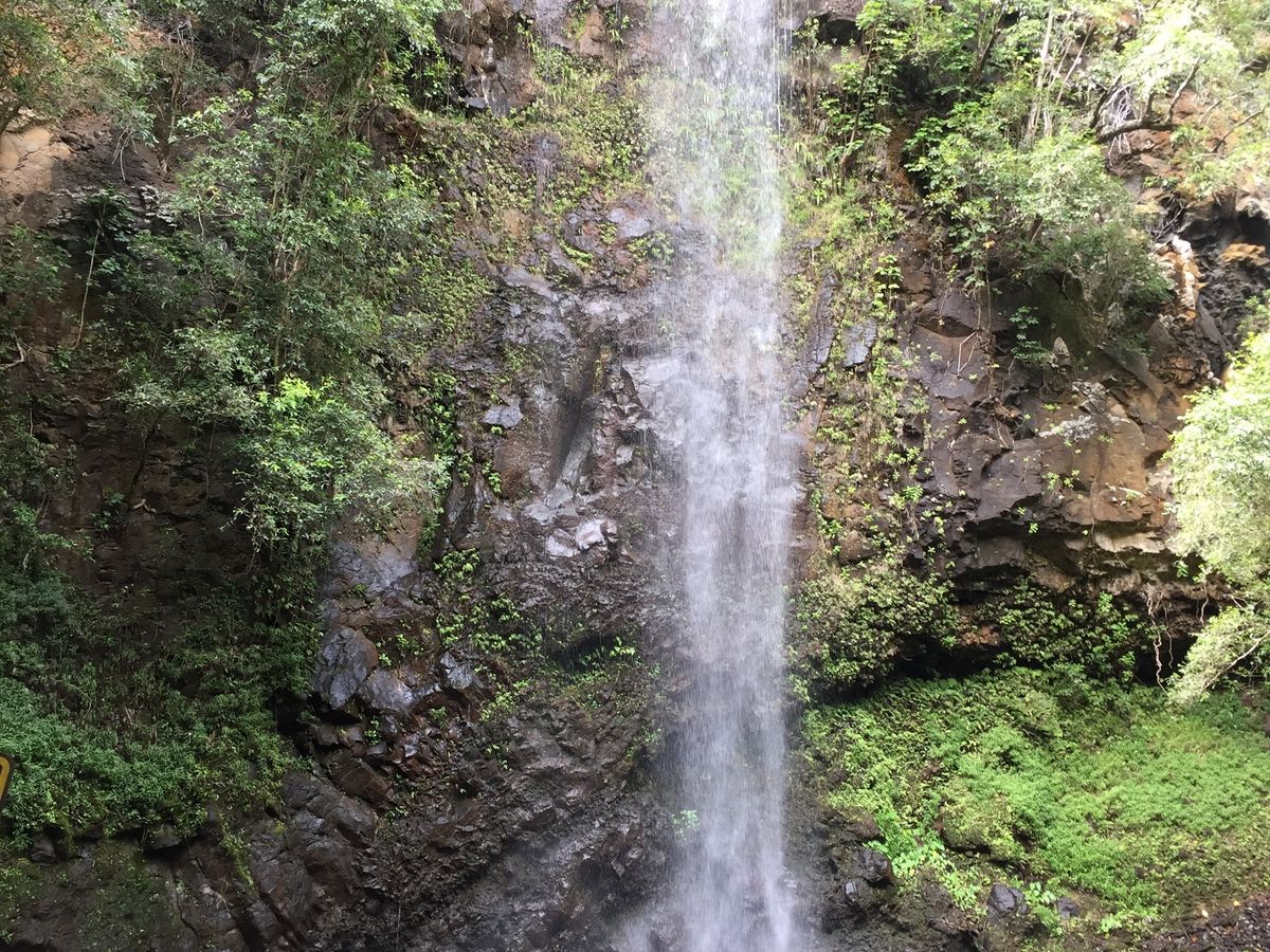 朝の8:30ぐらいにホテルをでて、戻ってくるのが15:00ごろ。カヤックして、ハイキングをして、滝をみて、またその逆をこなして帰ってきます。帰りのカヤックは少々疲れましたが、初心者でもなんとかできると思います。ガイドさんも一番遅いカヤック近くにいてくれるので安心でした。途中、シダの洞窟行きの船が行き交うので船の来るときは避けるのに必死でした。天候も良かったせいか、雨具を使うこともなく熱帯雨林でのハイキングも想像よりは楽でした。水やランチを入れたリュックは重いですが、女子2人でもなんとか大丈夫だと思います。それよりも、カウアイ島の景色を楽しんだり普段できない体験をぜひしてみてください。満喫できました。
