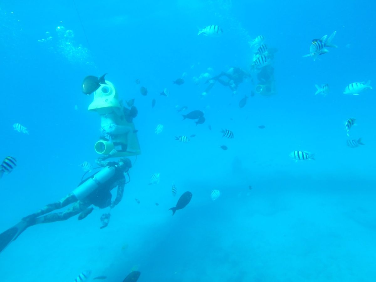 海の生物に会いたい気持ちは一緒で、何かないか探していたらこの水中スクーターに出会いました!!船の上で説明を受け、海に顔をつけてぼふっと水中スクーターの中に顔を出してすくーたーに跨ります!そうしたらあとはずっと後ろにダイバーさんがついてくれて海中まで連れて行ってくれます!海の水は透明でとっても視界がクリア★しかも魚は人に慣れているのかものすごい量が寄ってきました♪すごくかわいいし、ウミガメも見れたし、幸せな時間でした!私たちはスクーターにまたがり足元のアクセルを軽く踏むだけ(^^♪動画もとってくれます!有料(3000円)ですが、払う価値あると思います!とってもきれいなんです★自分たちの時間が終わったら、あとは自由時間です。私は泳ぎたかったので一人で泳がせてもらっていましたが、その時も魚が寄ってくるようにパンをくださいました!優しい方々でとっても楽しい時間になり、泳げない友人も満足していたようで良かったです!