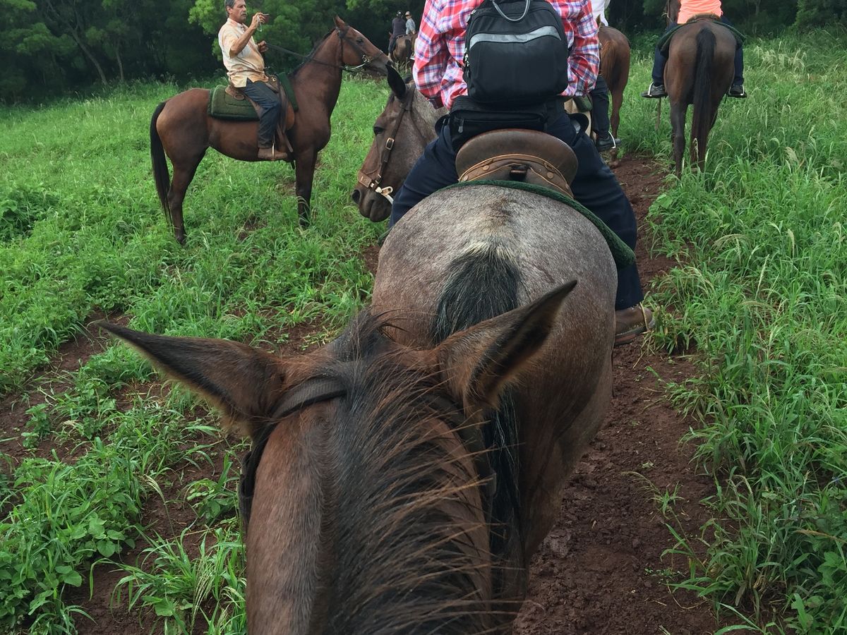 私自身は3度目の体験ですので、最初の時の強い印象はありませんが、今回初めて体験した友人夫婦には新鮮であったようでとても喜んでくれました。今回の7泊のハワイでのイベントのトップクラスと感想を伝えてくれました。その事が、今回の旅行を誘った私としては嬉しく思います。雨でぬかるんでいたため、馬が足を滑らせていたため、余計スリルに溢れていたようです。