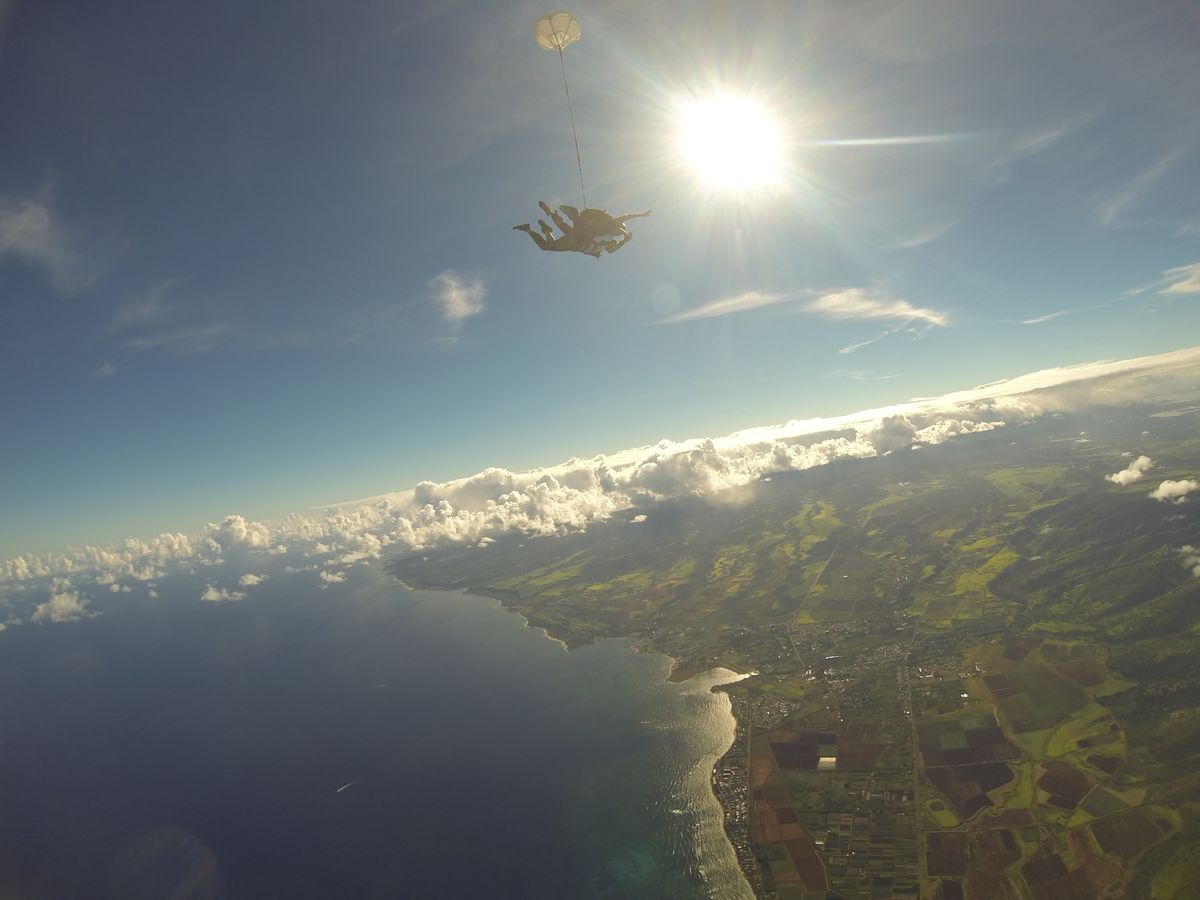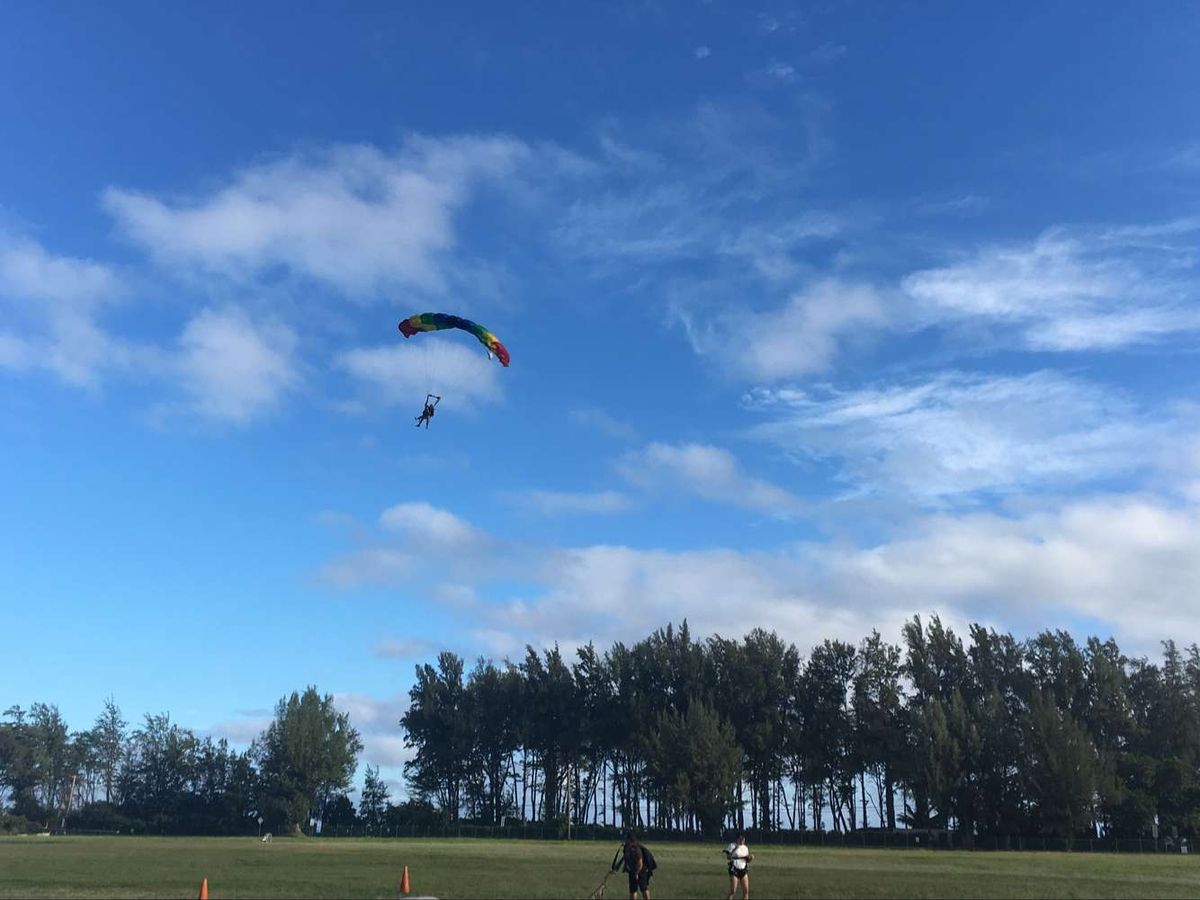参加する前は不安もあったのですが、結果、楽しめました。パラシュートが開くまでは、スピードが速くて、私は息をするのに精一杯でした。パラシュートが開いてからは、普通は急旋回をしながら降りるのですが(そうしないと、下に降りてこない)、私は酔いやすく、くるくる回るのは嫌いだとインストラクターに伝えたところ、ゆっくり時間をかけて降りてくれました。ハワイの美しい風景を堪能できて良かったです。ワイキキのホテルには、10時過ぎに帰ってきました。ビデオを購入しましたが、私の必死の形相がおもしろいらしく、家族みんな大爆笑。いい記念になりました。