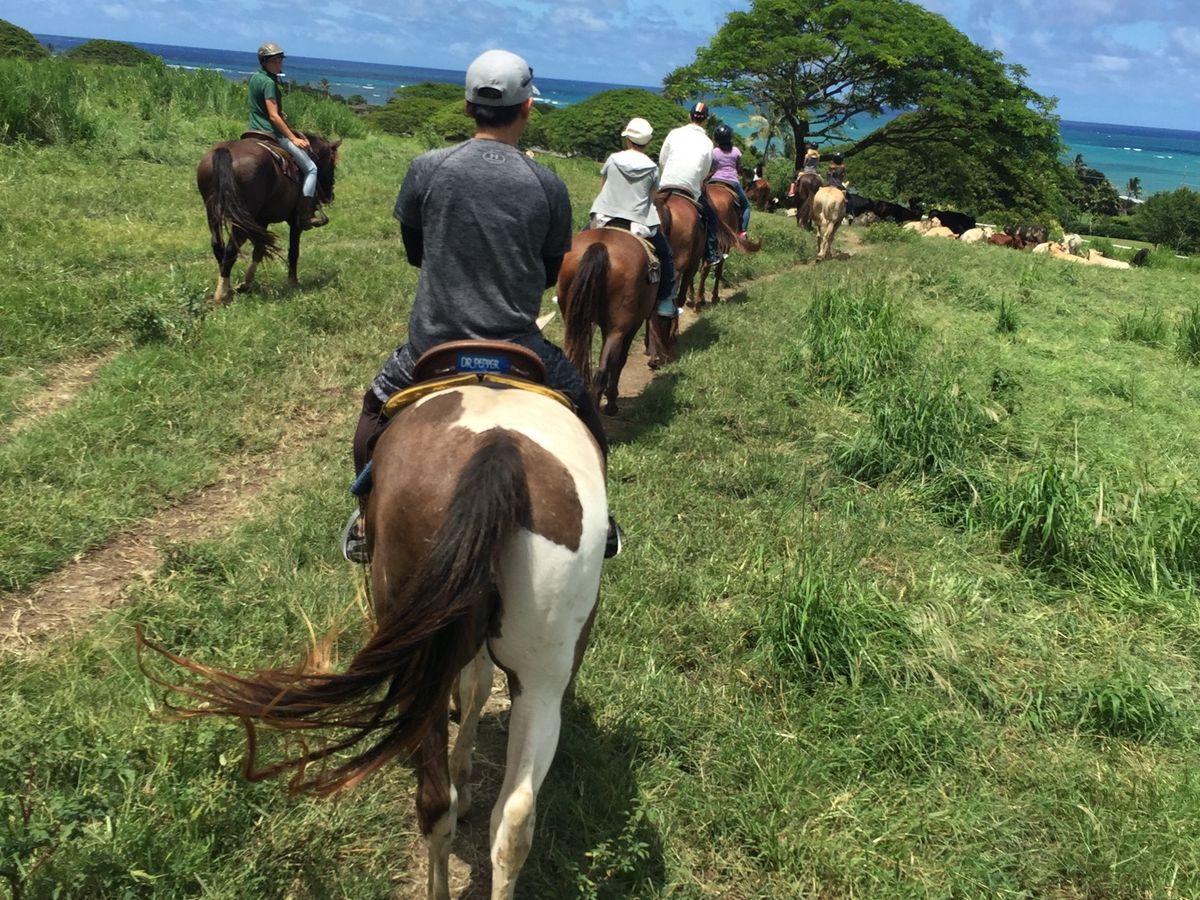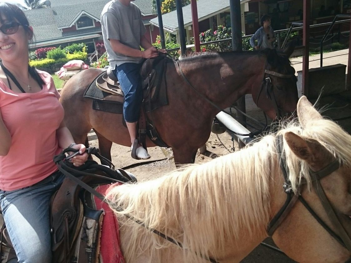 ハワイ3回目にして初めての乗馬❗️最初はクアロアで乗馬を考えていましたが、本場のガーリックシュリンプが食べたくてこっちにしました!結果最高のロケーションでの乗馬が出来て感激‼️お馬さん達は、途中食欲に負けて文字どうりの道草(~_~;)これも中々の面白い体験でした‼️親切なガイドさんもありがとう〜〜‼️