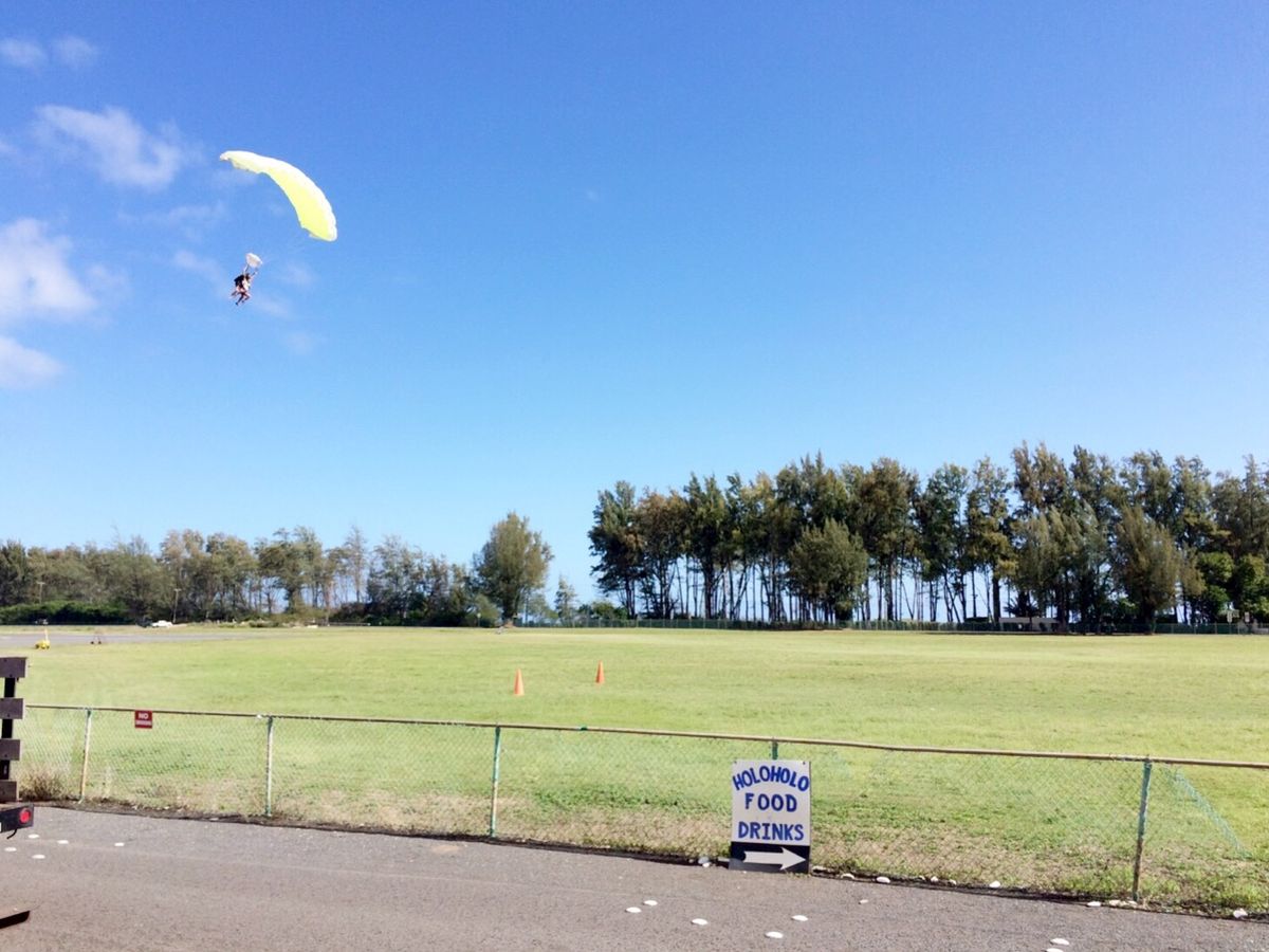 到着してすぐ部屋に案内されて契約書の記入漏れがないかの確認、これからのタイムスケジュールの説明がありましたが分かりづらかったです。私たちはすぐ名前が呼ばれたので準備をしてすぐ飛行機に。飛行機が高度を上げていく間は恐怖心もなくなるくら素晴らしい景色が楽しめました。徐々に高度が上がっていきカメラマンが飛行機のドアを開けたらゴーサインなので覚悟を決めてください。フリーホールとも違いすごい開放的なダイブでした!ダイビング最中、景色はとても綺麗で爽快感がすごいですが、とても耳が痛かったです。耳抜きできないと楽しめないかもしれません。私の方はゆっくり地上に降りて楽しかったですが、妻の方のインストラクターはグルグル回ったり急降下したりとおふざけがありとても怖かったそうです。降りてからも酔ってしまったようです。パラシュートで楽しませてくれるインストラクターはもう運ですね。私の方はリックという名前でした。妻の方はお調子者の若い人だったみたいで名前覚えてません、すいません。