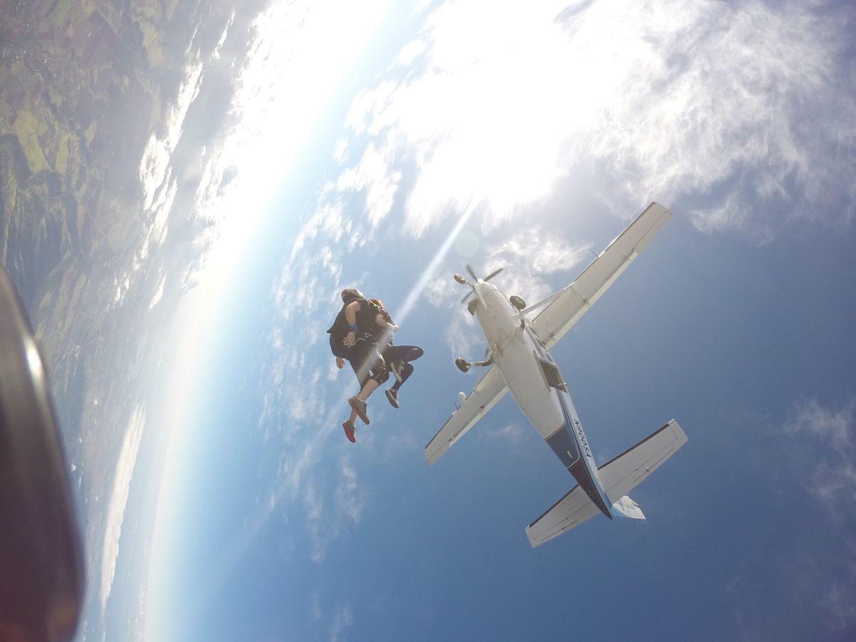セスナに乗ってからぐんぐん上昇して飛行機から見るような景色になったときに「本当にここから飛ぶの・・・?」と思いましたが、14000フィートに達してから扉が開いてからは、心の準備もする余裕もないままインストラクターにぐんぐん前に進まされて(笑)、すぐに空中へ放り出されました。
