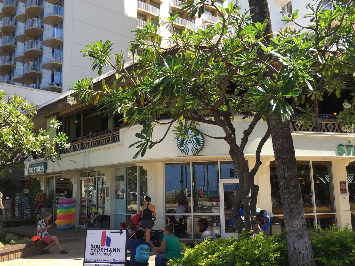 バス停前(Kapahulu Ave + Kalakaua Aveの角)にはスタバやABCストアもあります。
