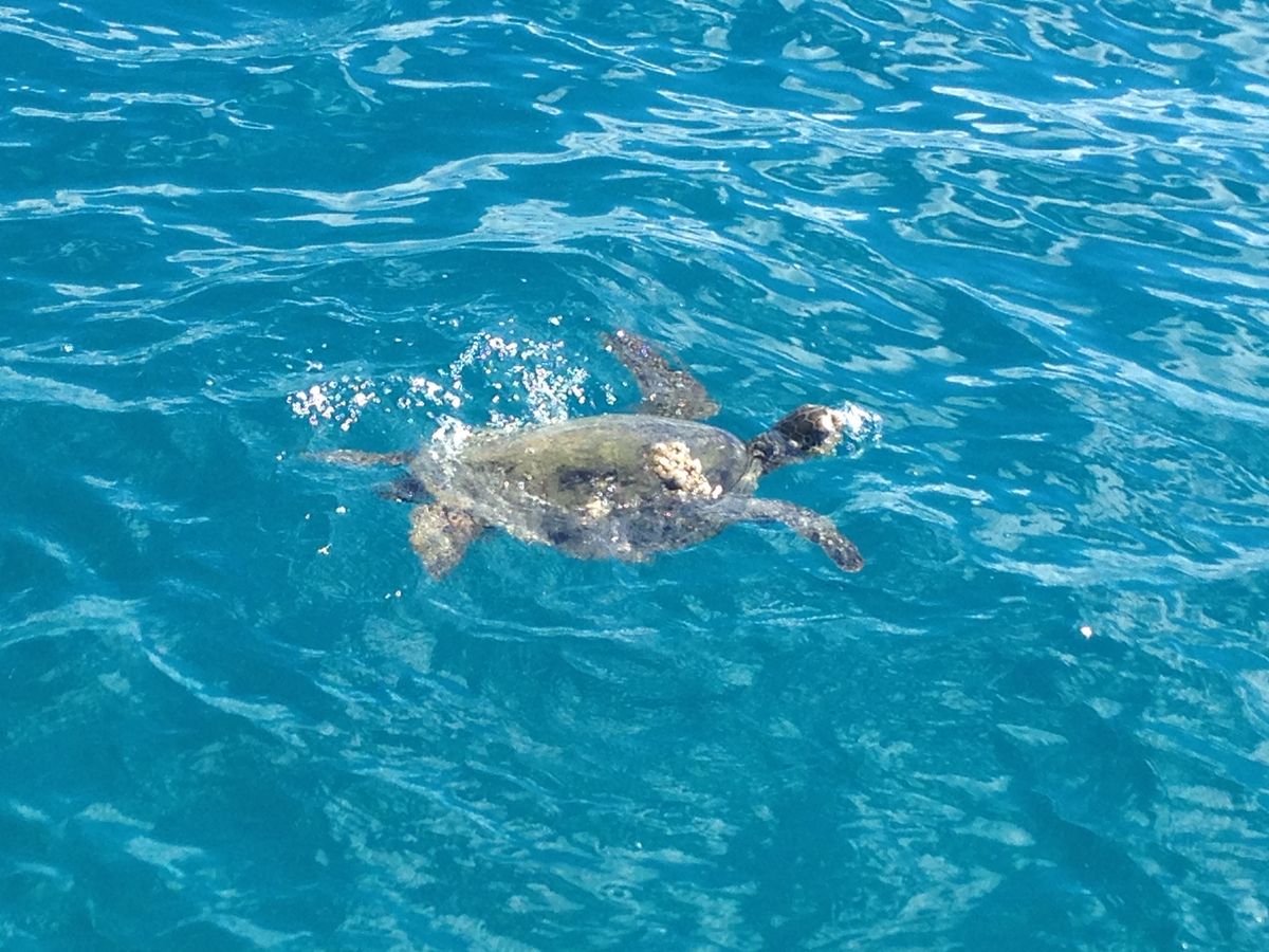 クルージングでは、ちょうどいい(?)波でみなで興奮しながら、海がめを探して盛り上がり、運よく海がめも見れました。また、グアバの木からグアバの実をとってもらいその場で食べさせてもらいました。美味しかったです。