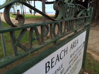 ホノルル中心から歩いても行ける場所ですので、早起きして波打ち際の散歩をしながら到着。バスだと5分くらいの距離です。