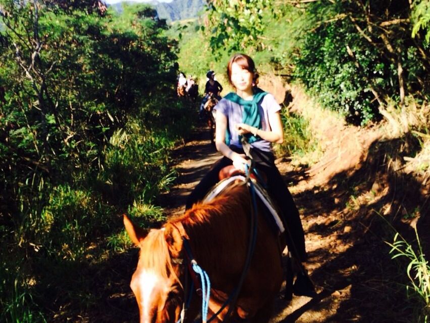 乗馬が思いのほかスリリングで高さがあって初めは怖かったですが途中から自分の乗っている馬が可愛くなってきました!