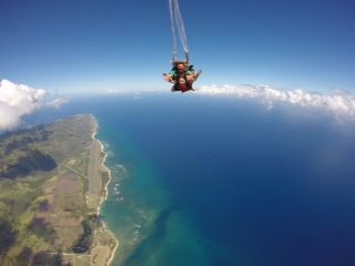 他の方の体験談にもありましたが、パラシュートが開いた後、ダイバーの方はサービス精神なのか、くるくると旋回をしてくれます。景色が見られて楽しいですが、自分は3回やられたあたりで気持ち悪くなりそうだったので、「I get airsick easily」と相談したら、以降は不要な旋回はやめてくれました。