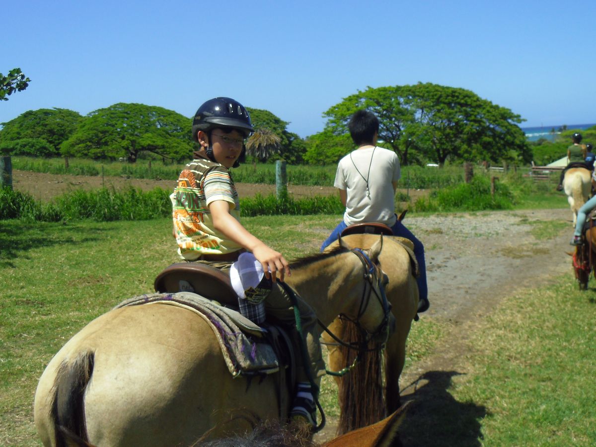 前回、友人と二人で行ったクアロアですが、今回は13歳の息子と一緒に行きました。16歳以下の息子連れなので、バギーは乗れませんでしたが、午前中はシークレッドアイランドでのアクティビティ、カヤックやビーチでのボール遊び、卓球など一緒に行った他のネイティブの観光客と一緒に楽しみました。午後は乗馬と映画村ツアー、乗馬を息子にさせたかったのですが、彼もとっても楽しんでいました。映画村ツアーは正直映画より自然を満喫でしょうか。とにかく、楽しい1日でした。ちょっと残念だったのは、ランチタイムとお土産を買う時間がほとんどなかったことです。でも、無駄な時間を使わずに1日楽しめました。