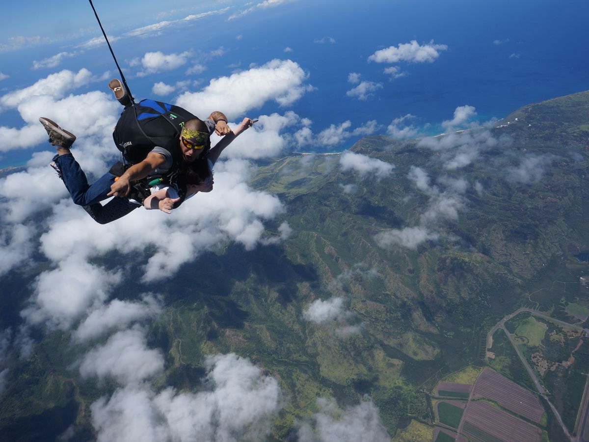 あっという間の最高の体験!セスナで上昇していく時点で美しい景色に感動を覚えていましたが、雲に落ちていく感覚はこれまで味わったことのないものでしたし、不思議と気持ち良い体験でした。パラシュートが開いた後は、まさに空中散歩といった感じ。落ちてきた興奮とあいまってawesome!awesome!と叫んでました。