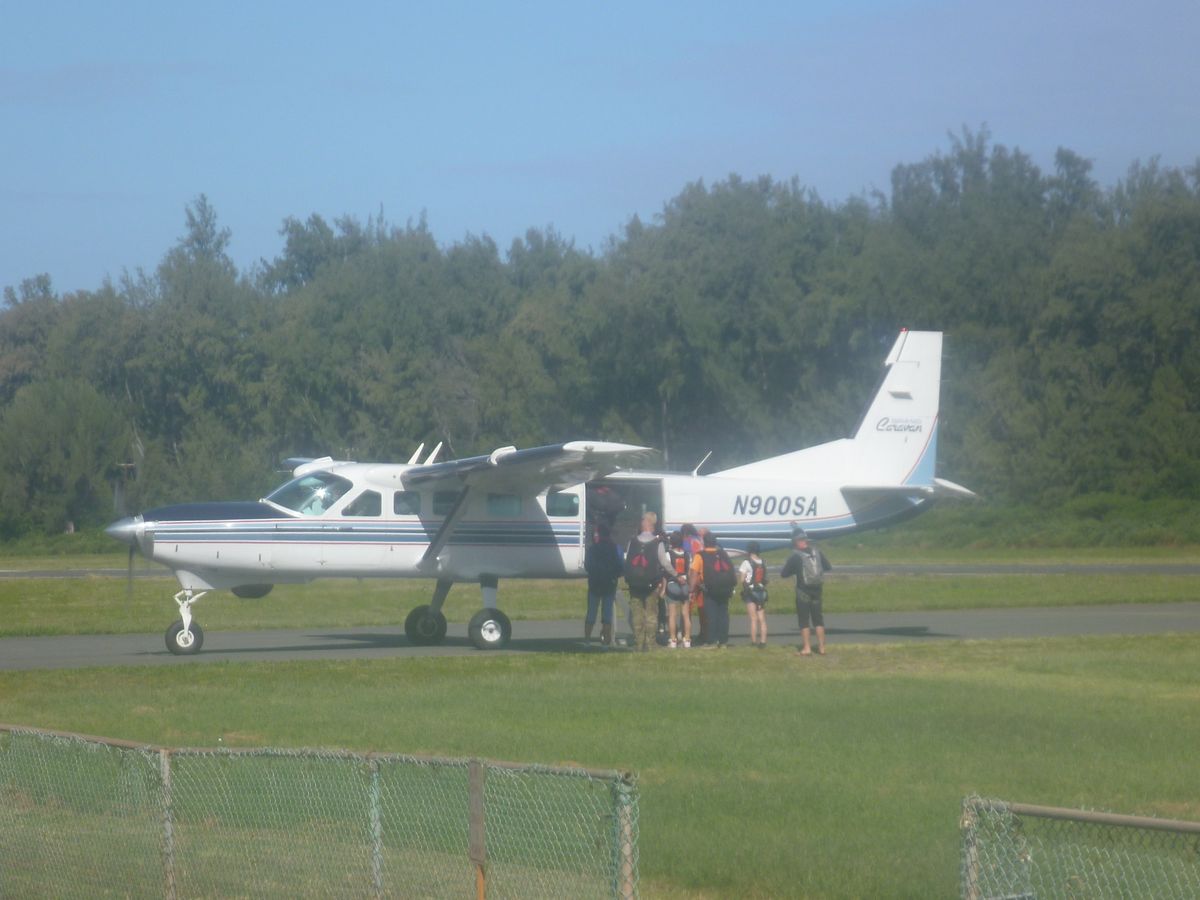 私達が参加した2月27日は空いていた様で、飛行場に着いてから飛ぶまで待った感覚はありませんでしたが、帰りのワイキキホテルまでの送迎ワゴンは満席になるのを待って出発したため、飛んでから帰るまでは待ち時間があり、ホテルに戻る時間は読めませんでしたので、スカイダイビングをする後のスケジュールは余裕をもって組むことをオススメします。