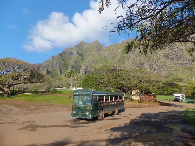 ハワイに来ても観光地には、ほとんどいかないウチの家族にしては珍しい訪問先。半日観光にして、映画撮影場所ツアーと乗馬体験に参加。映画撮影については知らない映画が多いとちょっとつらいけど、ルートの途中の景色は一見の価値あり。雄大なハワイの風景が広がります。乗馬については、最初マザー牧場(わからない人、ごめんなさい!)に毛が生えたようなものと思っていたけどスケールが違います。馬に乗ったこともないのに手綱を持ってくれる人もおらず、一人で1時間くらい乗馬します(もちろん、集団行動ですけどね)。大丈夫か?と思ったけど、馬の方が「できた奴」なので、何の心配もなし。雄大なハワイの風景を楽しんでください。(当日、スコールが降ったこともあるけど、汚れていいかっこで参加してくださいね)