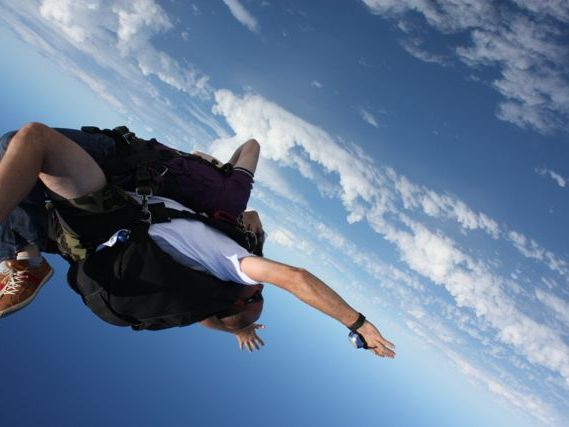 ベテランの人にベルトで繋がれて飛ぶタンデムダイブなので安心です。