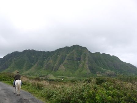 肝心の乗馬ですが、90分もあっという間。マンゴーやパッションフルーツの木や、色とりどりの花が咲いている木々の間を抜けて行ったり、馬の背からノースショアの海を眺めたり。