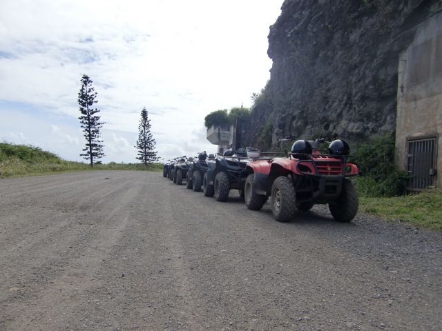 このグループで、オーストリアの昔の軍用車6WDに乗り換えてのオフロード体験。私有地の牧場や、畑をがたがた超えてすごい振動と風にみんな大興奮!!かなり寒かったです。その後、タロ畑、つり橋をトレッキングし、ハワイ人古来の占い方法や植物の名前などを教わりながら小さな滝をめぐりました。増水していたので泳ぎはしませんでしたが、夏場だったら絶好の場所だと思いました。
