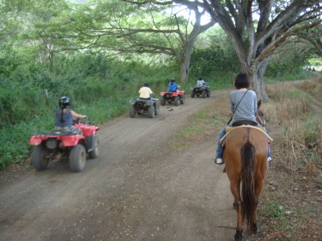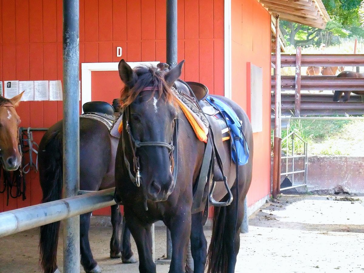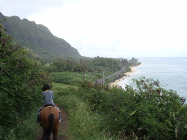 着いたその日の午後、15時からの乗馬2時間コースに9月17日参加しました。結婚式+新婚旅行で夫婦共々初めてのハワイです。着いたその日を無駄にしたくなくて見つけたツアーがこれでした。馬に初めて乗る主人は言葉もわからないので不安がっておりましたが、馬が誘導してくれるので初めての人でも大丈夫ですよ。私は多少英語が話せたので様々な話が聞けて楽しかったです。お尻は痛くなりますが、こんな道を通るの?ってところを馬は進みます。途中で動物も出てきたりします。風と木々が揺れる音の中に身を置くってあまり経験できないことですよね。海や緑がとにかくキレイでした。待ち時間も飽きることなく、犬や猫に豚がいたので遊んでました。言葉は多少日本語の話せるスタッフもいるので安心です。送迎があるのは非常に有難いですね。Shopには最近話題の海外ドラマ『LOST』のフィギュアとかがあったりします。バッグを身につけて馬には乗れませんので預けるようになります。貴重品を身につける外から見えない腹巻バッグみたいなモノがあったら良かったかもと思いました。途中のポイントで写真も撮ってくれます。先日ハワイ在住の友人からここの牧場で結婚式を挙げたご夫婦がいたと聞きました。それ位、素敵なところです。1日ツアーじゃないと行けない場所もあるようなのでまた参加したいねと主人と言ってた程です♪