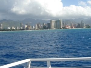 潜水艦へ行くまでのシャトルボートは結構揺れますが、甲板に出ていると、青い海がきれい!イルカの群れがジャンプしてついてきたりして楽しかったです☆(写真には残念ながら写ってないみたい・・)乗り物に弱い母は最初気分悪そうでしたが、外の風に吹かれているとマシだったそうで、イルカは喜んで見てました。