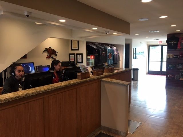 カウンターの奥で講習を受けます。(危険な事も多いので英語が苦手なかたは日本語のガイドをもらってください。)