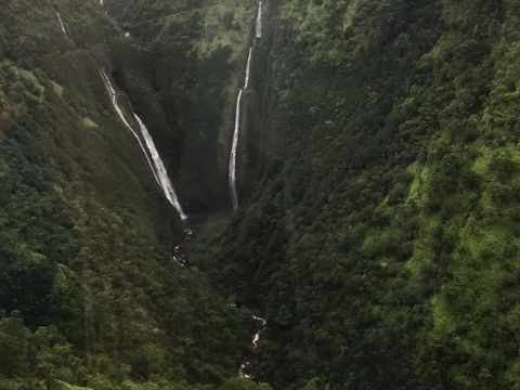 3.いよいよ出発!とにかく見たことのないような景色が続きましす。マウイ島はどの島よりも滝が多く、なかなか車では見に行けない場所も多いようです。パイロットさんの操縦には本当に驚き!近くまで寄ったり、停止したりとガイドをしながらの操縦にも関わらず、本当に安定感あり!