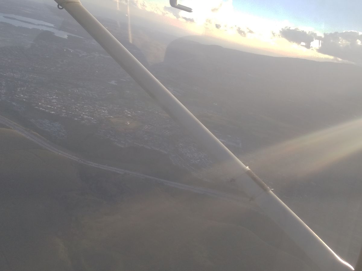 飛行途中に海上のイルカウォッチの船舶や上空から舞い降りるスカイダイビング中のグループを横目に見ながら、地形やルート、街の説明をしてもらえるので、余裕があればそれを楽しみつつ、進路と高度の維持に努めました。