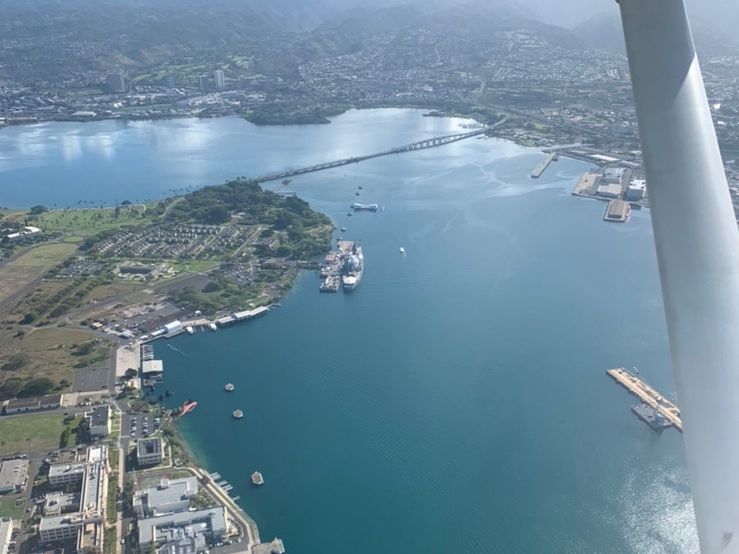 真珠湾の上空を自分の操縦で旋回するというのもなかなか出来ないことで刺激的でした。