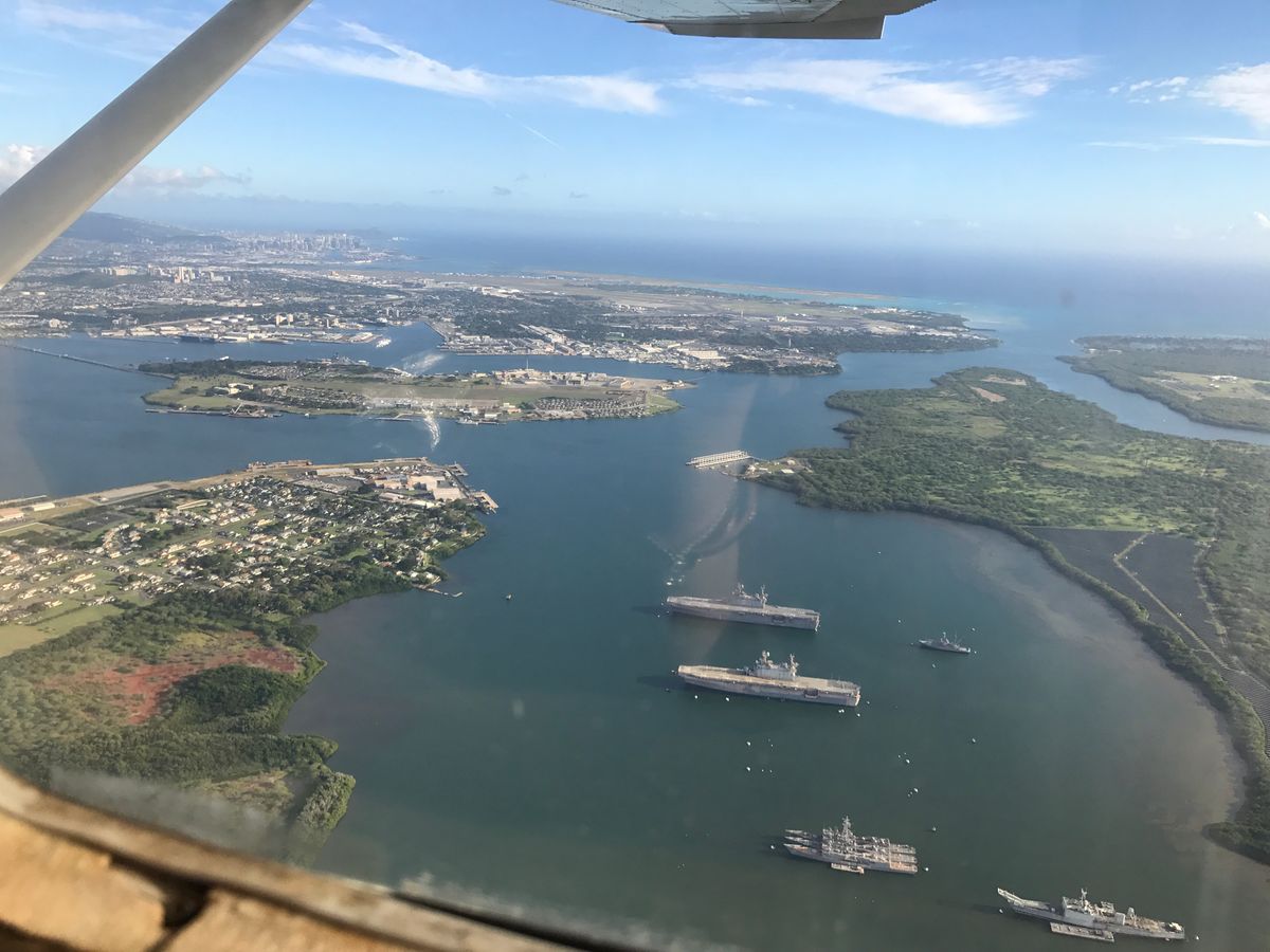 空からのパールハーバーの眺め…ヘリ操縦体験、ぜひお勧めです!