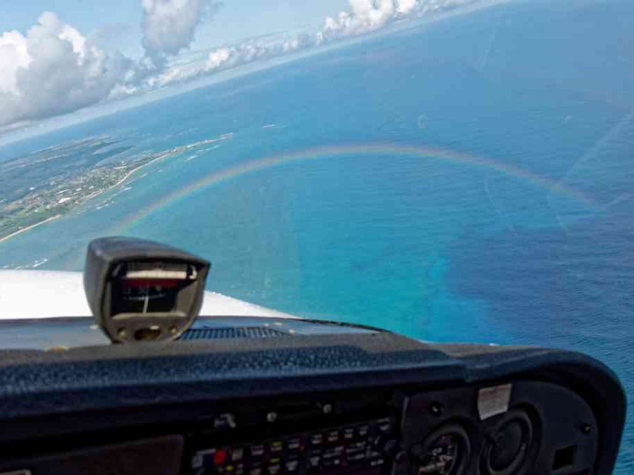 セスナで上空から虹を見たときに驚いたのは虹は上から見ると円を描いているということでした。さらに暫く景色を眺めたあとはある程度自由にセスナの操縦をさせていただき、一生に一度のいい経験をさせて頂きました!!