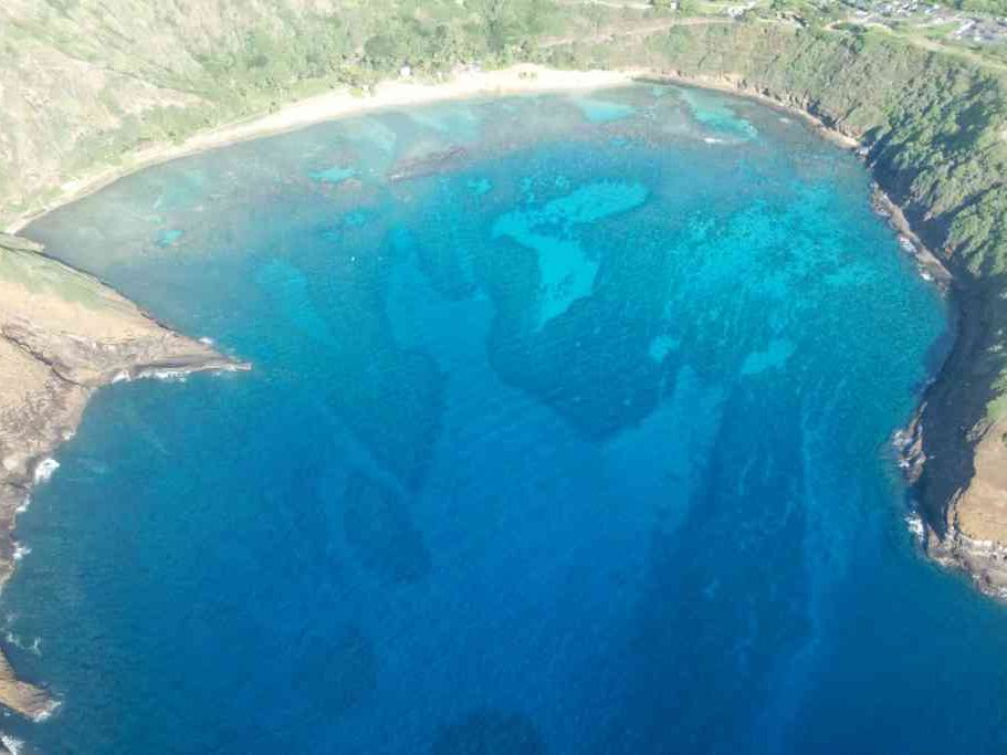 ワイキキビーチ側、もしくは真珠湾側からダイヤモンドヘッドの頂上のすぐ脇を通り過ぎていくのですが、欲をいえば頂上を過ぎた辺りで一度ターンしてもらえればダイヤモンドヘッド頂上のさらに高い背後から頂上ごとワイキキビーチが観れたんだろうなと思います。